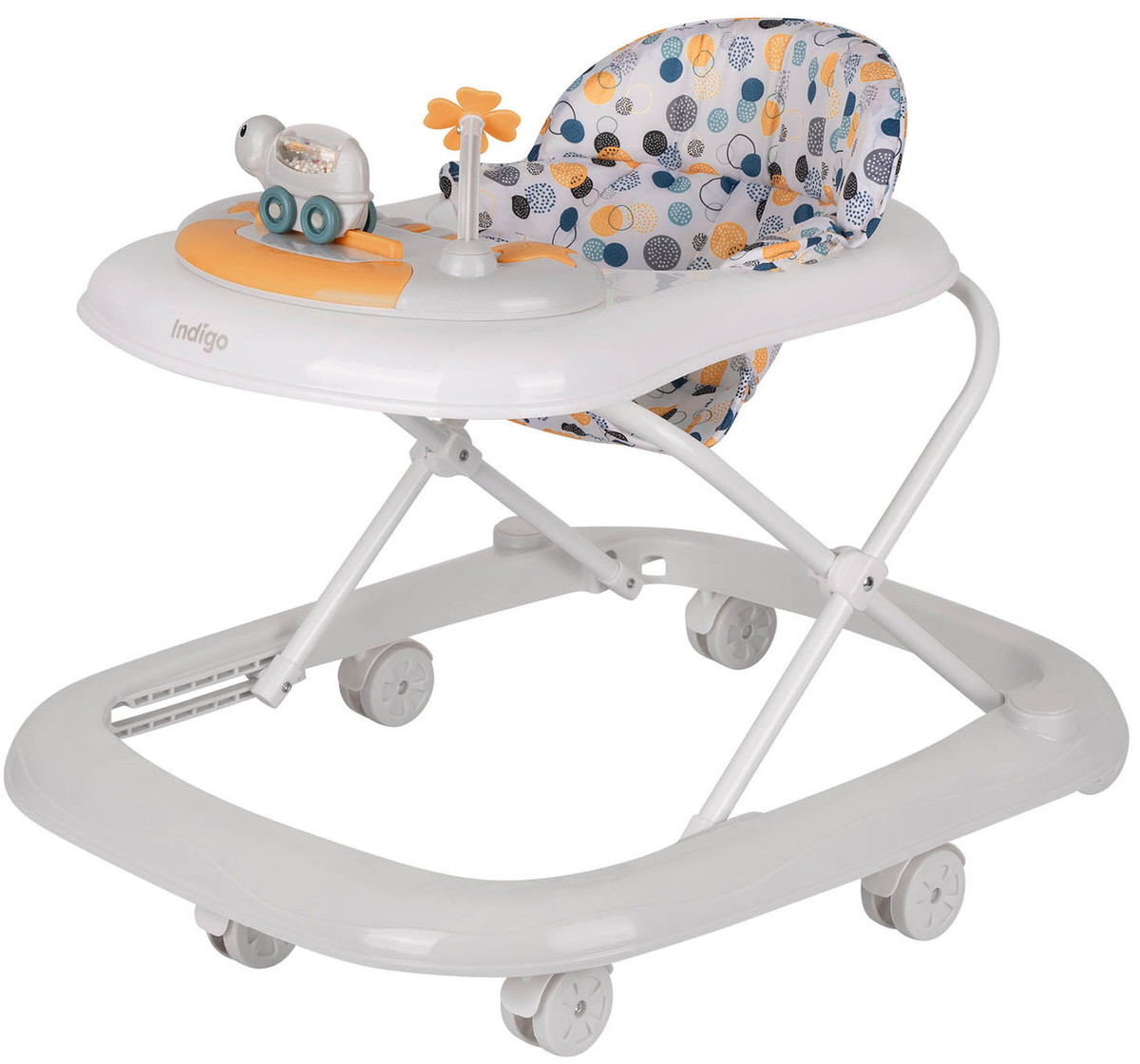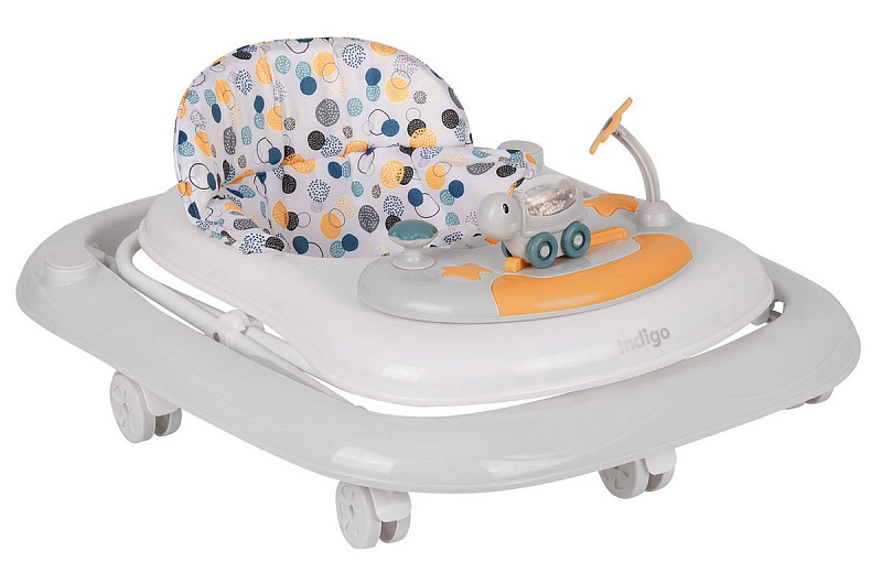 Ходунки TURTLE от бренда Indigo — функциональное решение для малышей, которые начинают делать свои первые шаги. Модель оснащена прочной конструкцией и устойчивым основанием с 7 колесами диаметром 6 см, что обеспечивает плавное движение по любой поверхности. Интерактивная игровая панель со световыми элементами и пятью мелодиями превращает обучение ходьбе в увлекательную игру.
