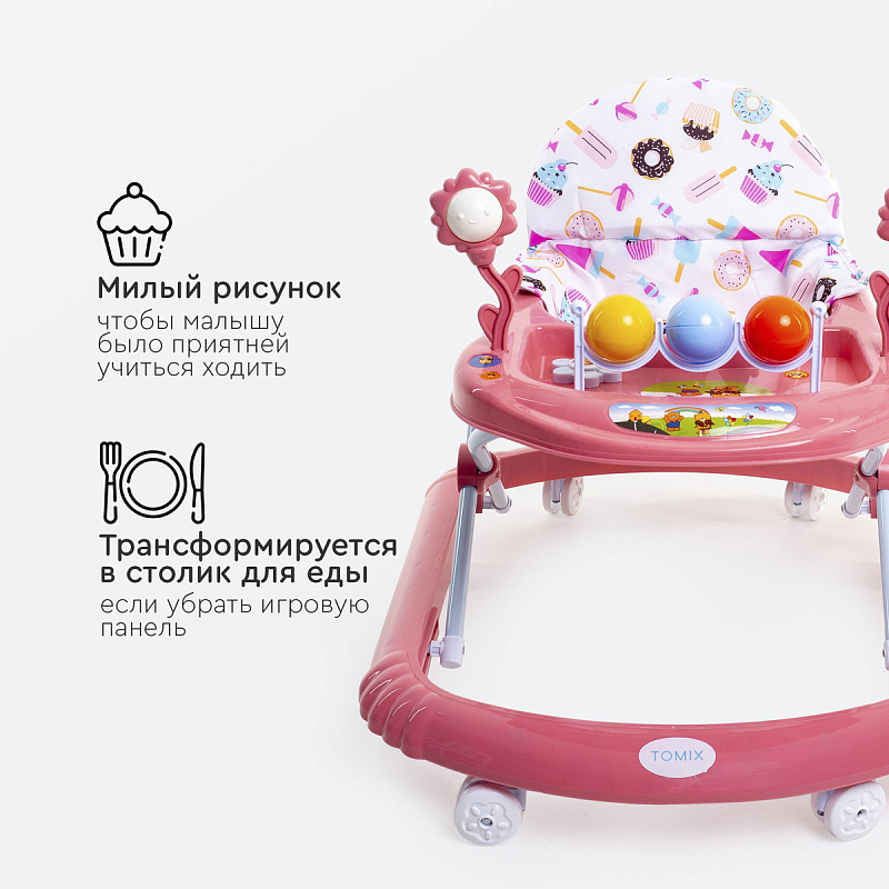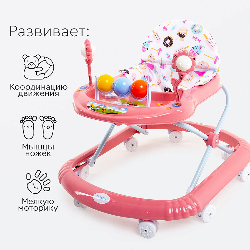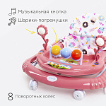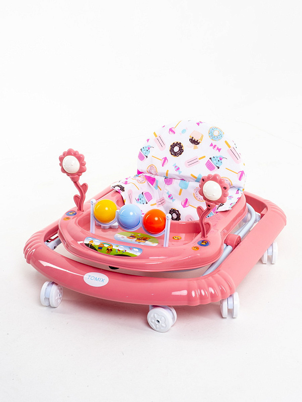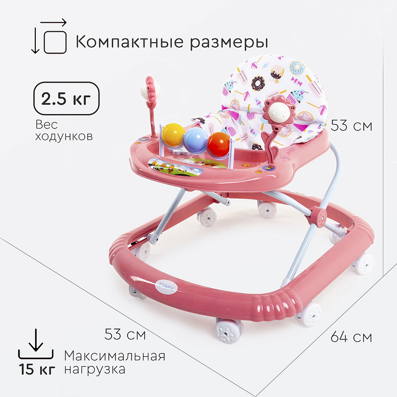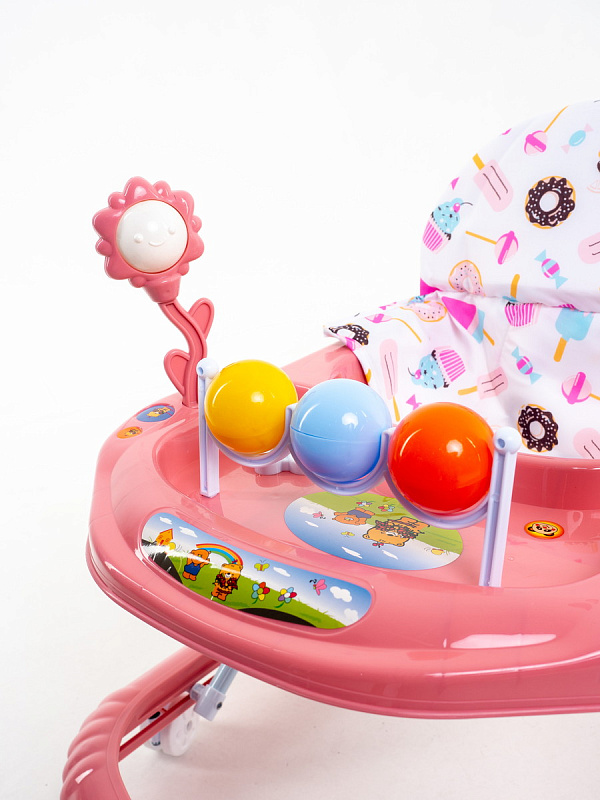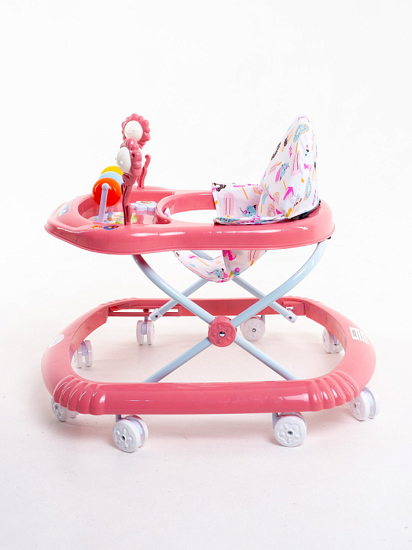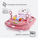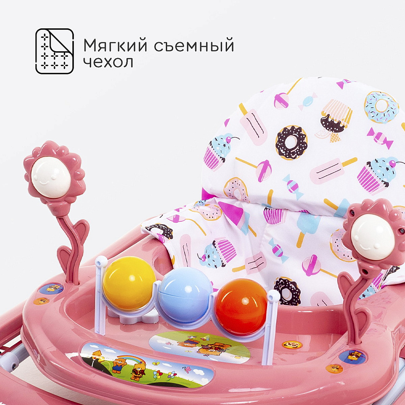 Яркие ходунки с музыкальной игровой панелью понравятся активным малышам и их родителям. Возможность регулировки высоты ходунков позволяет выбрать нужное положение под рост ребенка. Мягкое сиденье с высокой спинкой обеспечивает комфорт. Ткань сиденья съемная, что упрощает уход за ходунками. Спереди ходунков располагается игровая панель с шариками-погремушками и музыкальной кнопкой. Посредством звуков кроха знакомится с миром. Ходунки компактно складываются и оснащены 8-ю пластиковыми колесами.