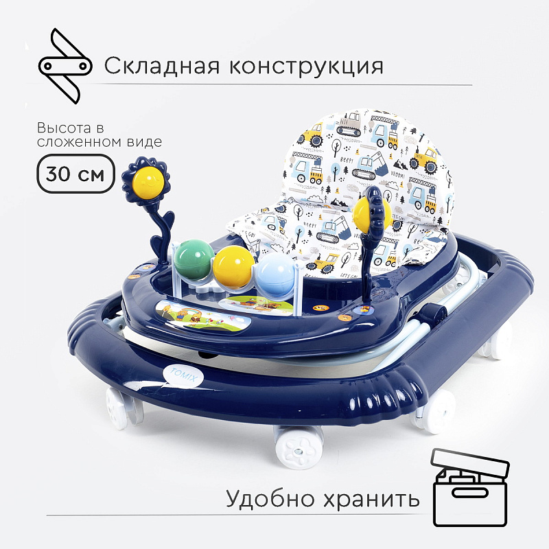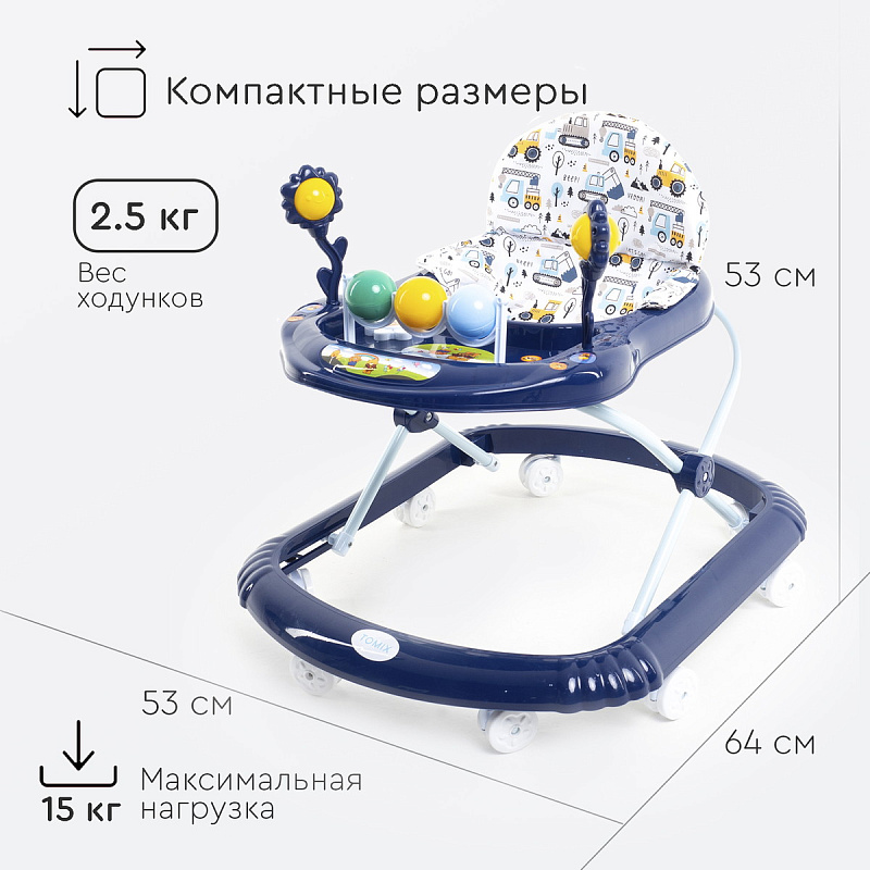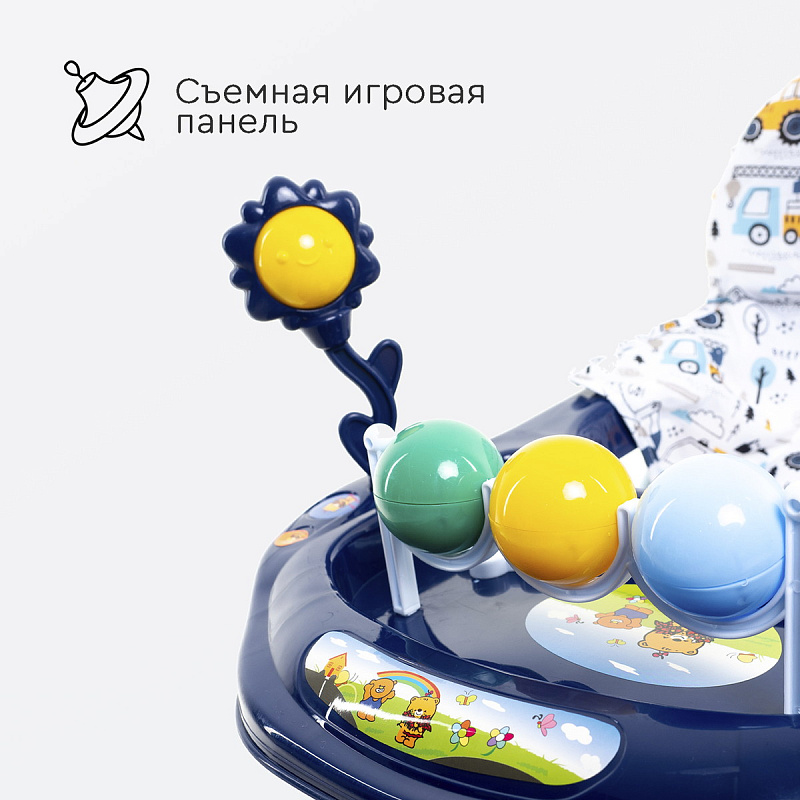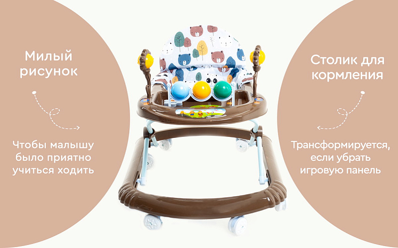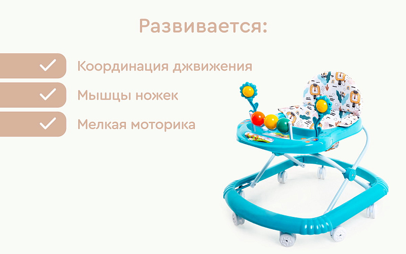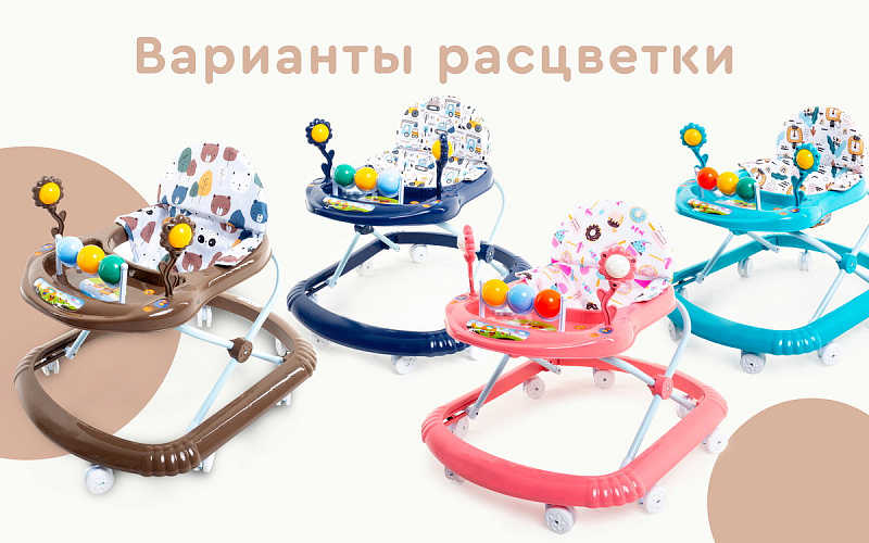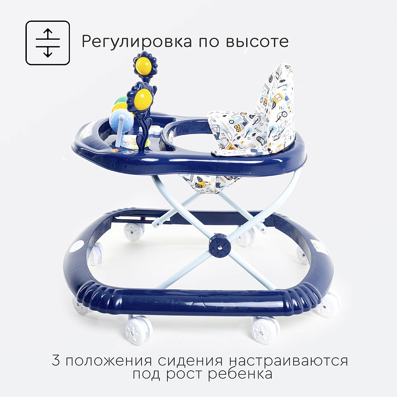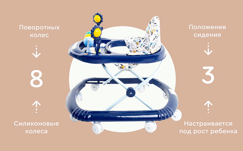 Яркие ходунки с музыкальной игровой панелью понравятся активным малышам и их родителям. Возможность регулировки высоты ходунков позволяет выбрать нужное положение под рост ребенка. Мягкое сиденье с высокой спинкой обеспечивает комфорт. Ткань сиденья съемная, что упрощает уход за ходунками. Спереди ходунков располагается игровая панель с шариками-погремушками и музыкальной кнопкой. Посредством звуков кроха знакомится с миром. Ходунки компактно складываются и оснащены 8-ю пластиковыми колесами.