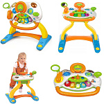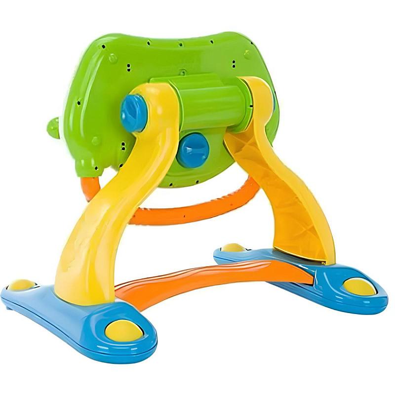 Колеса ходунков имеют тормозную систему, а панель можно повернуть для игры в сидячем положении. Основная панель также оснащена ручкой, за которую ребенок может держаться.
