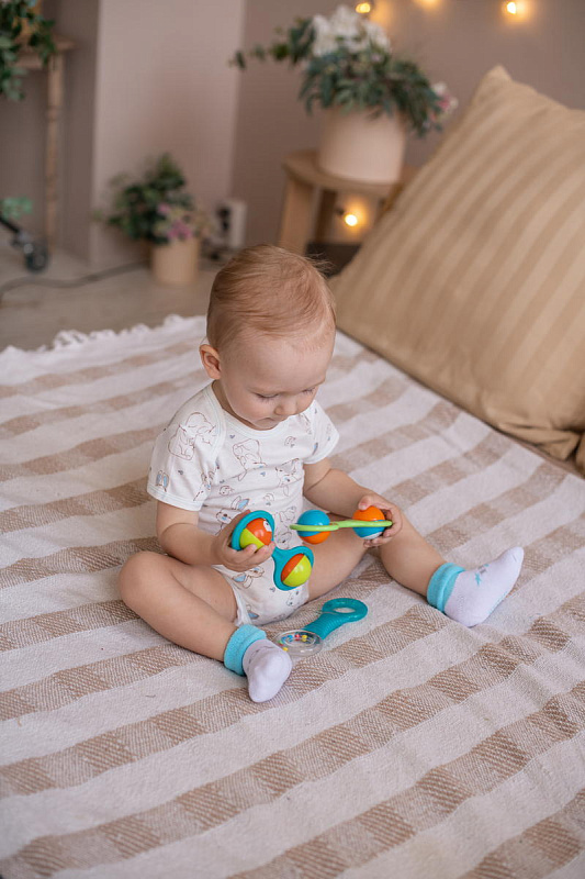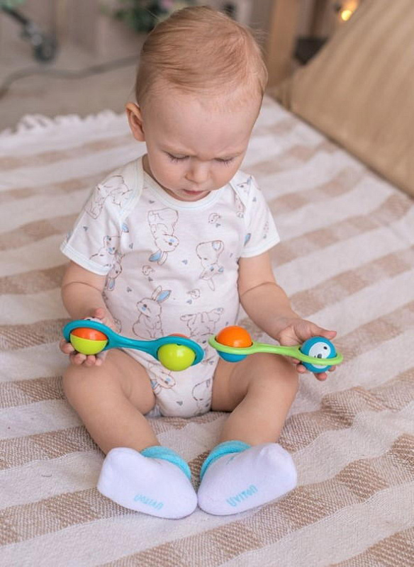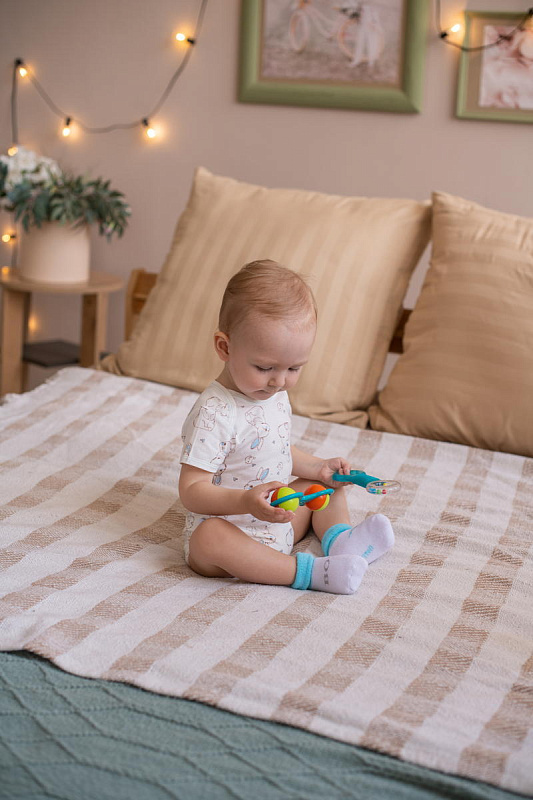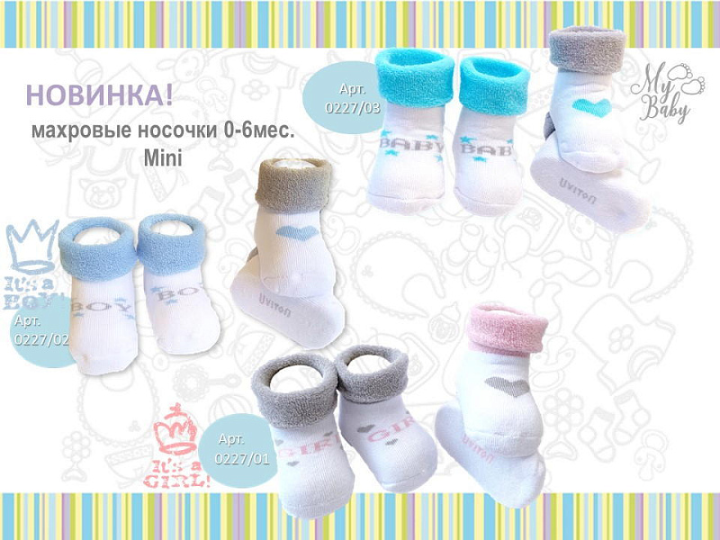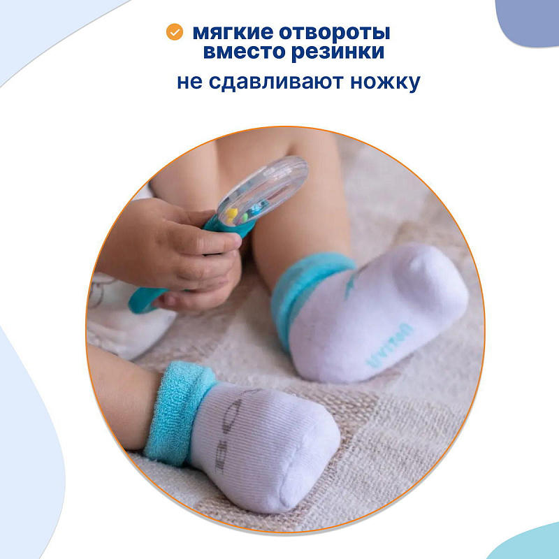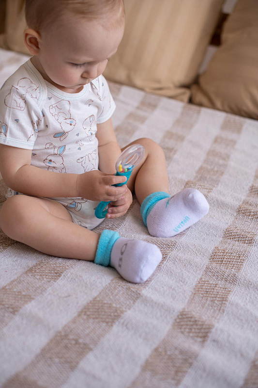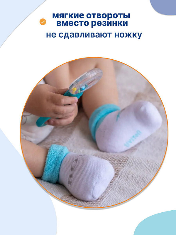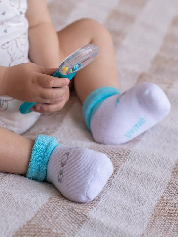 Нежный цвет изделий в сочетании с красочным рисунком выглядит очень привлекательно. Комплект состоит из 2 пар, которые отличаются по дизайну с выдержанной цветовой гаммой. На носочки нанесены надписи, которые, наверняка, понравятся малышу и вызовут умиление у взрослых. Текстура очень мягкая, нежная, что гарантирует вашему малышу комфорт при носке. Резинка совершенно не стягивает ножку, но при этом отлично фиксирует.