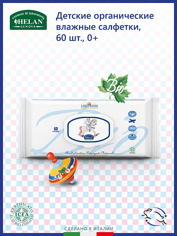 Детские органические влажные салфетки Helan Linea Bimbi 60 штук