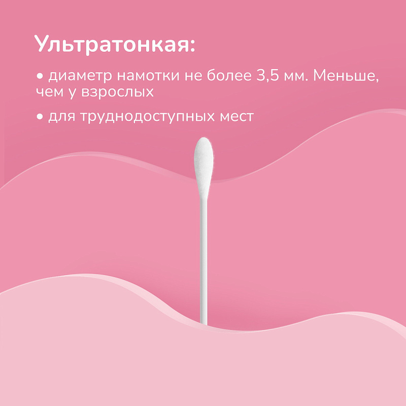 Детские ватные палочки Lubby ультратонкие 180 шт