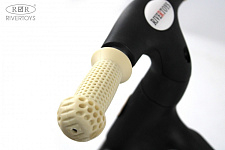 Прочная алюминиевая рама и надёжные пластиковые вилки гарантируют долгий срок службы беговела. Амортизаторы на переднем колесе смягчают удары при езде по неровной поверхности.
