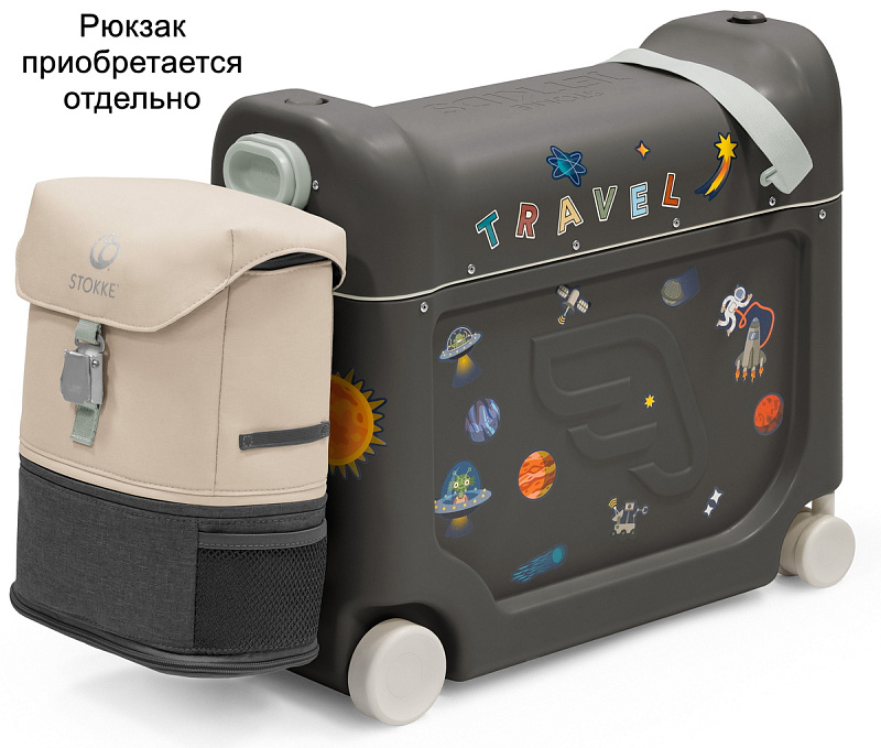 Детский чемодан-трансформер-каталка для путешествий Stokke Стокке Джет Кидс В4 JetKids BedBox V4 Темно-серый