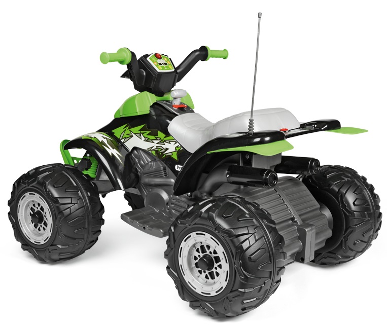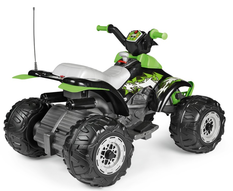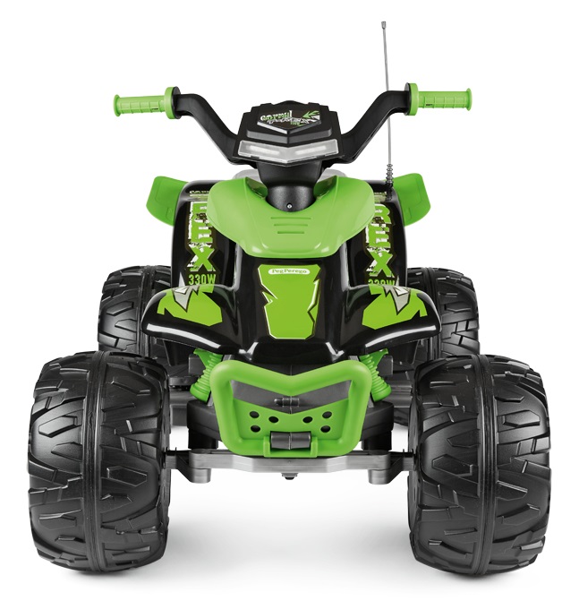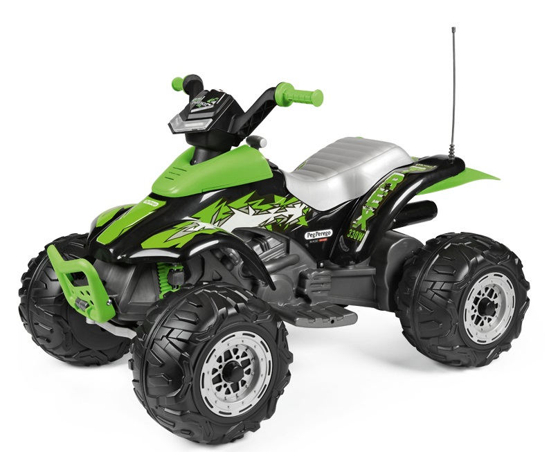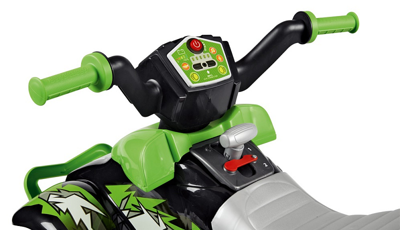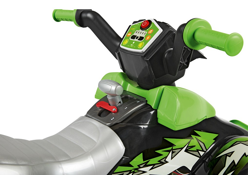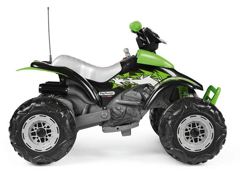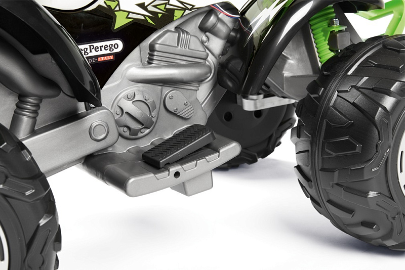 Электромобиль Peg-perego Corral T-Rex 330W - шустрый электрический квадроцикл, со звуковыми и световыми эффектами. Качество made in Italy и отличные характеристики производительности, со звуковыми и световыми эффектами, мелодиями и клаксоном для развлечения детей, в возрасте от 3 лет. Электрический квадроцикл работает от подзаряжаемого аккумулятора 12 В – 8 А-ч и 100 Вт-ч. Звуковые и световые эффекты: скорей в седло, развлечения начинаются! Включи электронную приборную панель кнопкой СТАРТ или нажми педаль акселератора, и ты будешь в восхищении! Помимо включения передней светодиодной фары, ты также услышишь рев мотора, сможешь посигналить клаксоном и воспроизвести уже записанные мелодии. Чтобы слушать любимую музыку, воспользуйся разъемом для подключения MP3-плеера (не входит в комплект). Играйте по-взрослому без забот.
