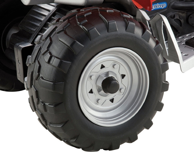 Уменьшенная копия настоящего всемирно известного американского квадроцикла Quad Polaris. Стильный спортивный квадроцикл на больших и мощных колёсах, которые оснащены протекторами. Имеется электронная приборная панель с кнопкой запуска. Светодиодные фары спереди. Есть индикатор заряда батареи.