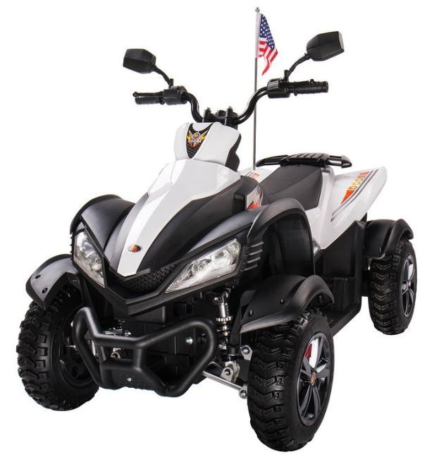 Квадроцикл Toyland 268А - настоящий зверь с электромотором, предназначенный для экстремальной езды по пересеченной местности. Модель идеально подойдет деткам от 2-х лет и позволит им почувствовать себя настоящими гонщиками бездорожья. На прямой квадроцикл способен развивать скорость до 7 км в час, благодаря двойному электродвигателю повышенной мощности.
