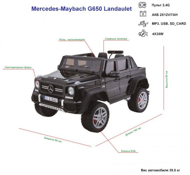 Детский электромобиль Barty Mercedes-Maybach G650 Landaulet белыйНет оценокХарактеристики