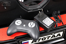 Пульт управления с индивидуальной настройкой по Bluetooth позволит родителям контролировать движение электромобиля на расстоянии. Амортизаторы, задние и передние, обеспечат комфортную езду даже по неровным поверхностям. Каучуковые колёса гарантируют отличное сцепление с дорогой и мягкий ход.