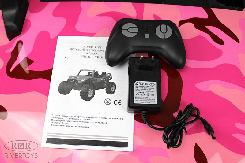 Детский электромобиль RiverToys A707AA LUX 4WD розовый камуфляж
