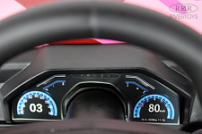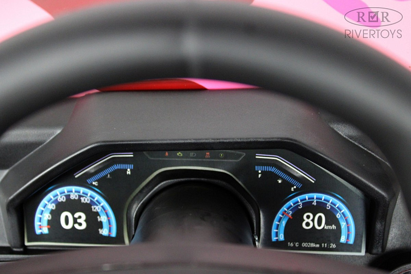Скорость электромобиля — 16 км/ч, с возможностью переключения между высокой и низкой скоростью с помощью кнопки. Сидение из кожи с трёхточечными ремнями безопасности регулируется вперёд и назад, обеспечивая максимальный комфорт для вашего ребёнка.