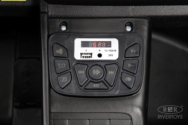 - Световые и звуковые эффекты: передние и задние фары включаются кнопкой, а также доступны звук клаксона и заводские мелодии через медиа-панель.