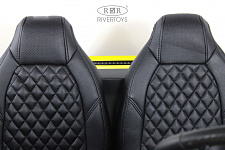 - Сидения: два сиденья из эко-кожи, которые могут двигаться вперёд и назад по отдельности.