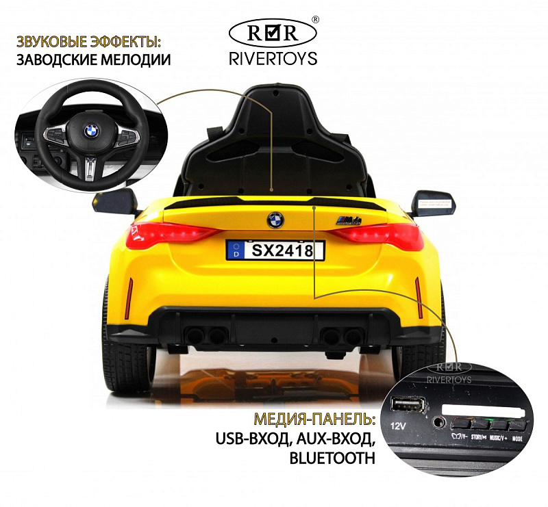 Детский электромобиль RiverToys BMW M4 A004AA желтый