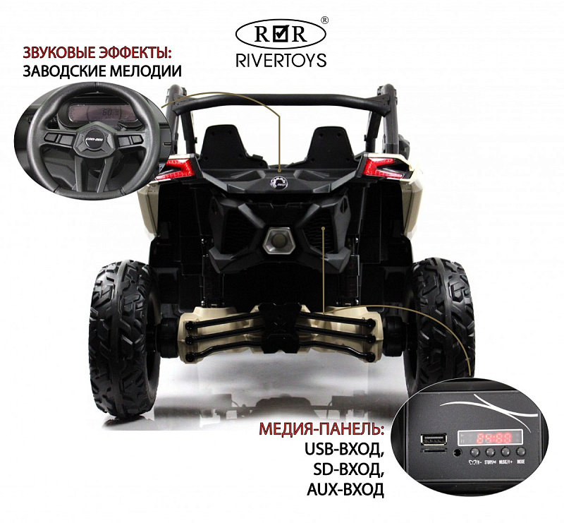 Детский электромобиль багги оснащен простым и удобным управлением, которое позволяет даже самым маленьким водителям чувствовать себя комфортно за рулем. BRP Can-Am Маверик Y111YY имеет двухместное сиденье и ремни безопасности, что обеспечивает стабильность и безопасность во время поездки.