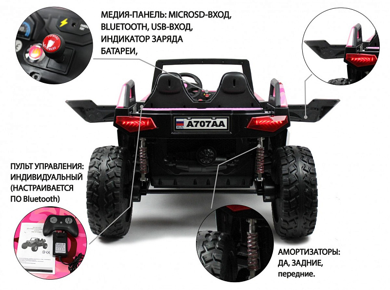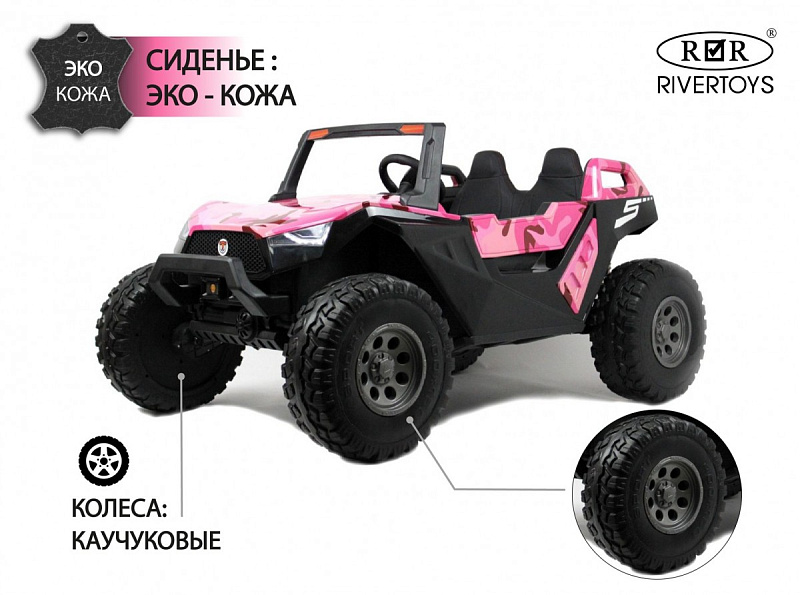 Детский электромобиль RiverToys Buggy 4WD A707АА розовый камуфляж