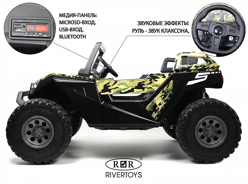 Детский электромобиль RiverToys Buggy 4WD A707АА зеленый камуфляж