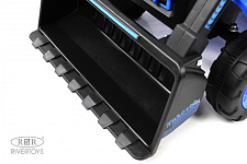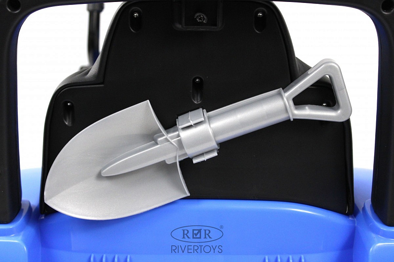 Колёса выполнены из пластика. Сиденье обито эко-кожей, есть полосной ремень безопасности. В комплекте идёт ковш-короб с механическим подъёмом и лопатка.