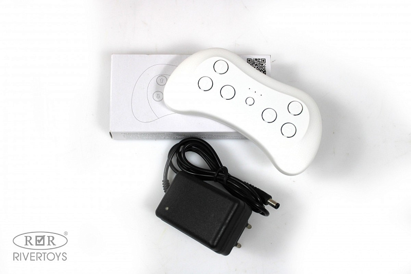 Управлять электромобилем можно не только вручную, но и дистанционно с помощью индивидуального пульта, который настраивается по Bluetooth и работает от батареек типа АА.