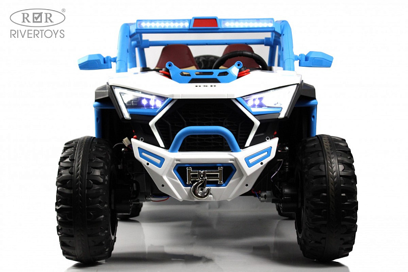 Детский электромобиль e001ee с дистанционным управлением - это двухместный полноприводный автомобиль для детей. Он оснащен различными световыми эффектами, такими как передние и задние фары, подсветка колес, передней дуги и радиаторной решетки.