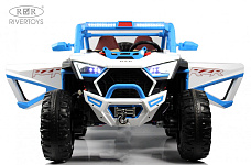 Управление осуществляется с помощью индивидуального пульта по Bluetooth и работает от двух батареек типа AA. Автомобиль также имеет амортизаторы, каучуковые колеса с запасным колесом, ремень безопасности, откидывающиеся верхние дуги и медиа-панель с USB-входом, Bluetooth, AUX и индикатором заряда батареи. Его размеры в собранном состоянии составляют 148х92х83 см, весит он 39 кг, может выдержать до 50 кг нагрузки, оборудован 24V/8Ah аккумулятором. Максимальная скорость автомобиля составляет 6 км/ч.