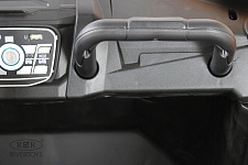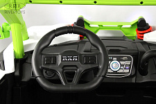 Управление осуществляется с помощью индивидуального пульта по Bluetooth и работает от двух батареек типа AA. Автомобиль также имеет амортизаторы, каучуковые колеса с запасным колесом, ремень безопасности, откидывающиеся верхние дуги и медиа-панель с USB-входом, Bluetooth, AUX и индикатором заряда батареи. Его размеры в собранном состоянии составляют 148х92х83 см, весит он 39 кг, может выдержать до 50 кг нагрузки, оборудован 24V/8Ah аккумулятором. Максимальная скорость автомобиля составляет 6 км/ч.
