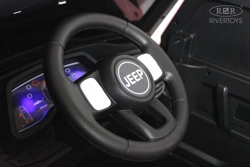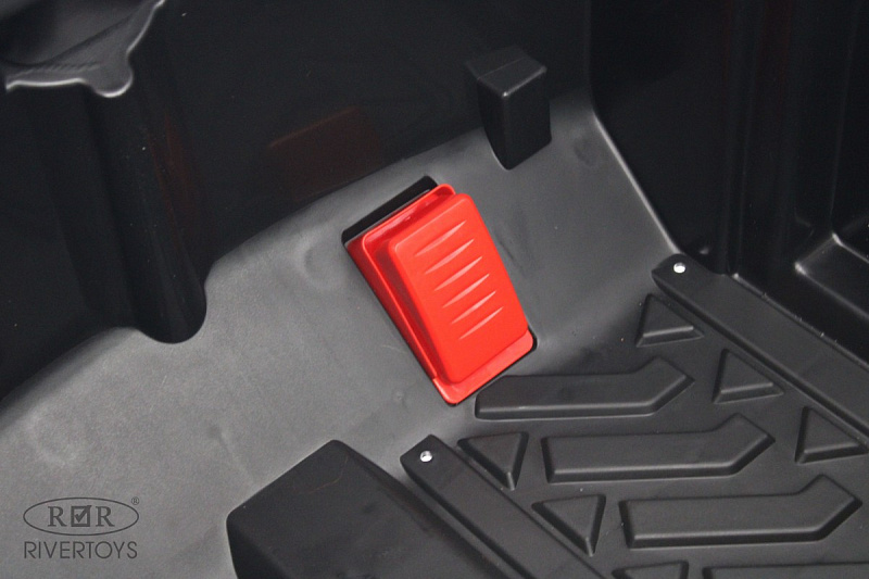 Включение осуществляется с помощью кнопки, а скорость регулируется — вперёд и назад, высокая и низкая. Медиа-панель оснащена USB-входом, Bluetooth, AUX и индикатором заряда батареи, что позволяет легко подключать различные устройства и следить за уровнем заряда аккумулятора.