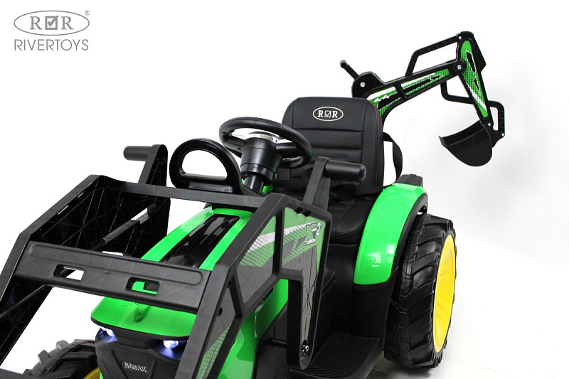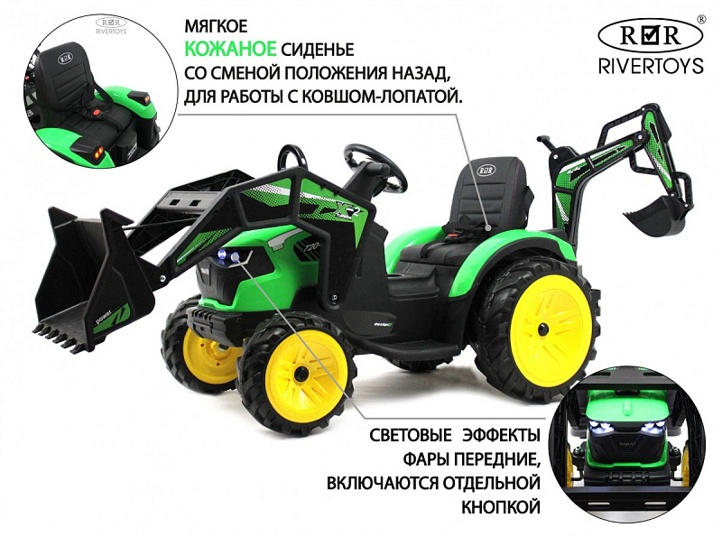 Детский электромобиль RiverToys экскаватор-погрузчик A777MP GREEN зеленый