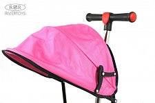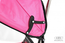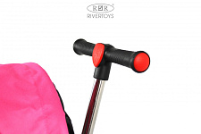 Модель имеет откидную крышу, фиксируемую в 2-х положениях и боковые ручки для удобства. Каучуковые колеса обеспечивают плавное движение и комфорт во время поездок. Удобное сиденье обтянуто экокожей.