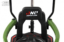 Модель имеет откидную крышу, фиксируемую в 2-х положениях и боковые ручки для удобства. Каучуковые колеса обеспечивают плавное движение и комфорт во время поездок. Удобное сиденье обтянуто экокожей.