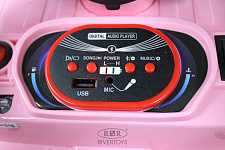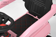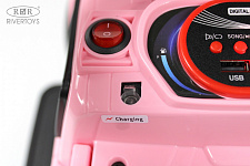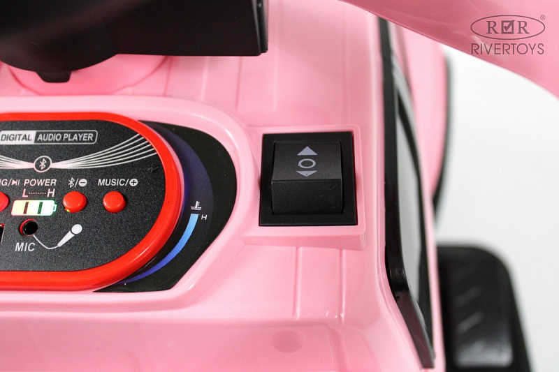 Сиденье из эко-кожи со спинкой из пластика обеспечивает комфорт во время катания. Включить электромобиль можно с помощью кнопки, а медиа-панель с Bluetooth, индикатором заряда батареи и USB-входом делает использование ещё более удобным. Откидная крыша, подножка и боковые фиксаторы безопасности обеспечивают дополнительную безопасность во время езды.