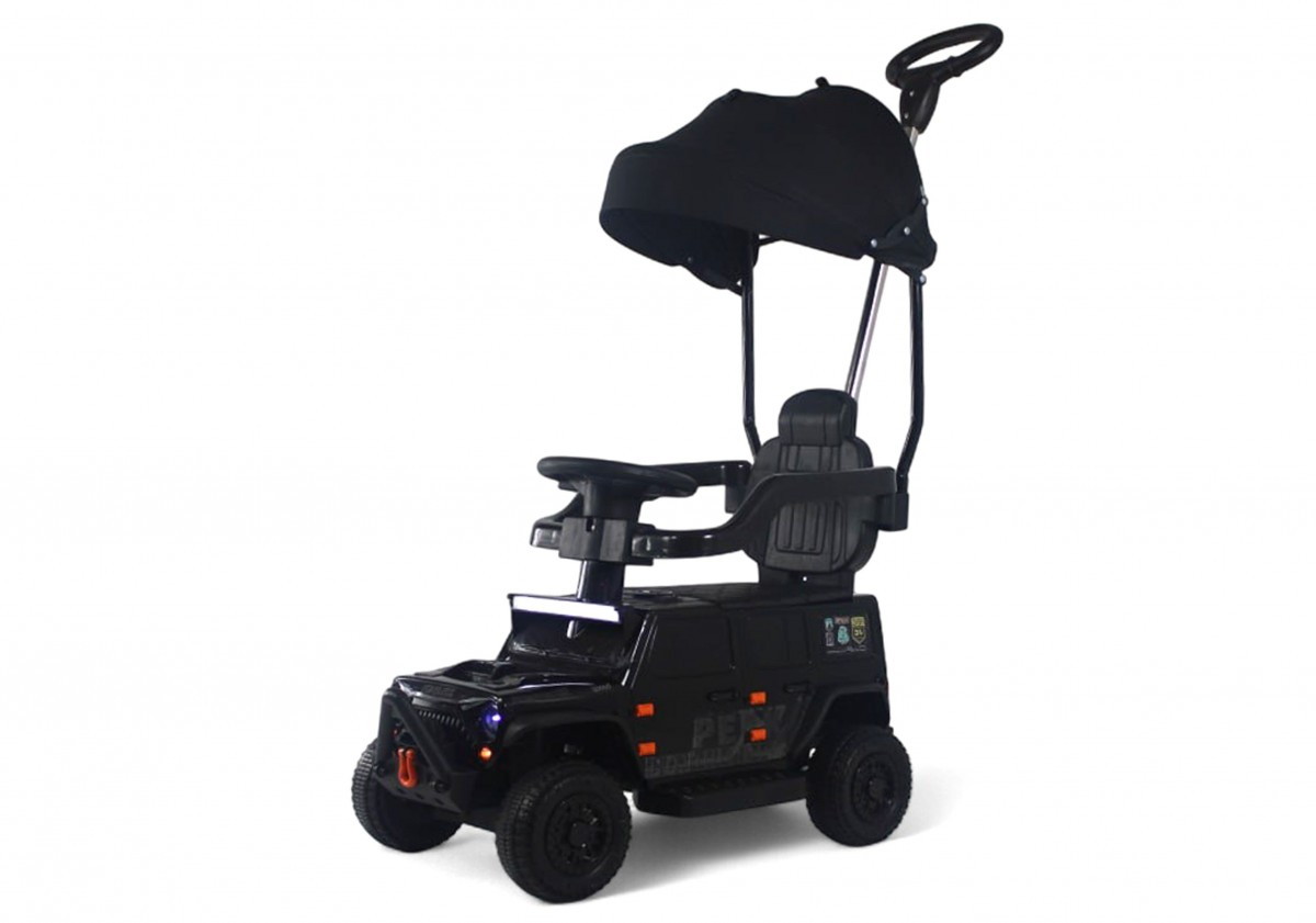 Особое внимание стоит уделить уникальным особенностям этой модели. Откидная крыша, принцип чемодана и откидные боковые фиксирующие ручки делают электромобиль удобным для транспортировки и хранения. А AUX-вход на медиа-панели позволяет подключить микрофон и устроить настоящее караоке-шоу! Мерцающая подсветка на лобовом стекле, работающая в такт с музыкой, добавит веселья и праздничного настроения.