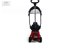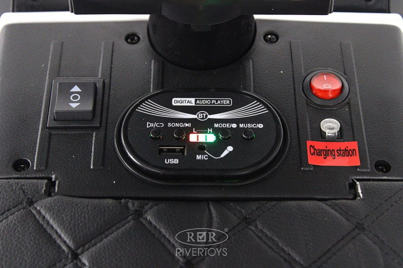 Особое внимание стоит уделить уникальным особенностям этой модели. Откидная крыша, принцип чемодана и откидные боковые фиксирующие ручки делают электромобиль удобным для транспортировки и хранения. А AUX-вход на медиа-панели позволяет подключить микрофон и устроить настоящее караоке-шоу! Мерцающая подсветка на лобовом стекле, работающая в такт с музыкой, добавит веселья и праздничного настроения.