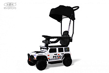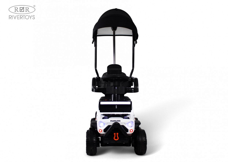 Особое внимание стоит уделить уникальным особенностям этой модели. Откидная крыша, принцип чемодана и откидные боковые фиксирующие ручки делают электромобиль удобным для транспортировки и хранения. А AUX-вход на медиа-панели позволяет подключить микрофон и устроить настоящее караоке-шоу! Мерцающая подсветка на лобовом стекле, работающая в такт с музыкой, добавит веселья и праздничного настроения.