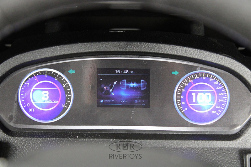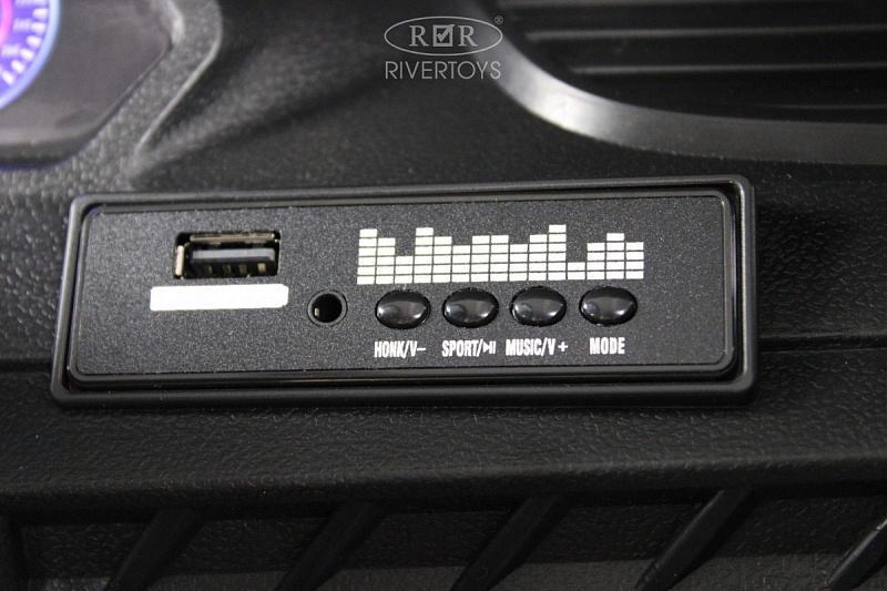 Медиа-панель электромобиля оснащена USB-входом, AUX-входом, индикатором заряда батареи и Bluetooth, что позволяет подключать различные устройства и наслаждаться музыкой или радио во время езды.