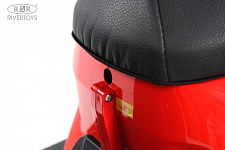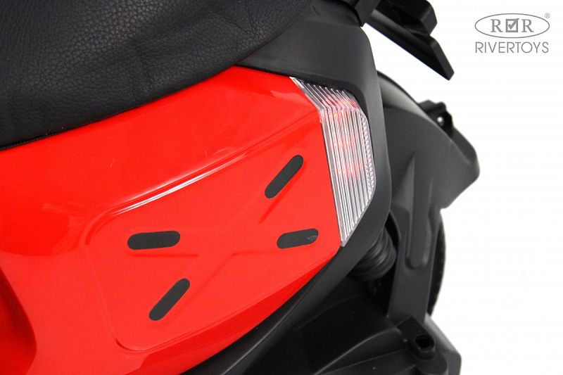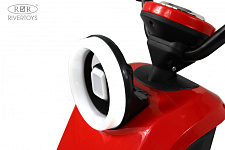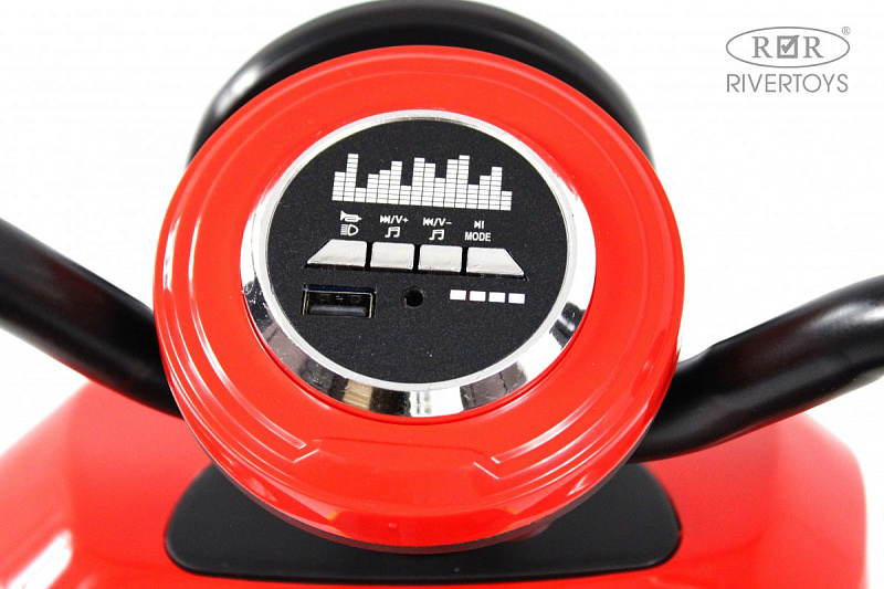 Включение осуществляется кнопкой или движением ноги, что делает использование электромобиля ещё более удобным. На медиа-панели расположены разъёмы USB, AUX и Bluetooth, а также индикатор заряда батареи, что позволяет легко заряжать электромобиль и контролировать уровень заряда аккумулятора.