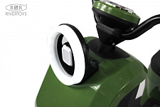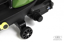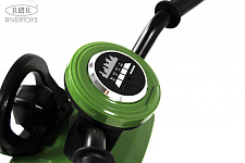 Электромобиль развивает скорость до 2–3,5 км/ч и имеет три режима движения: вперёд, стоп и назад. Сиденье изготовлено из эко-кожи, что обеспечивает комфорт и долговечность использования.