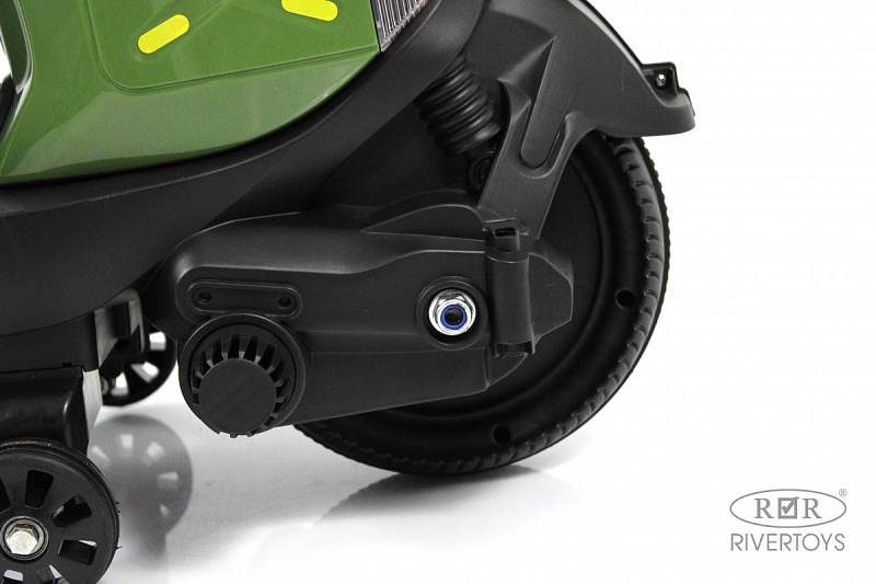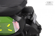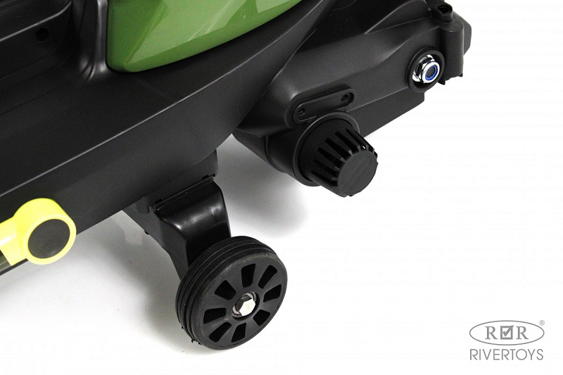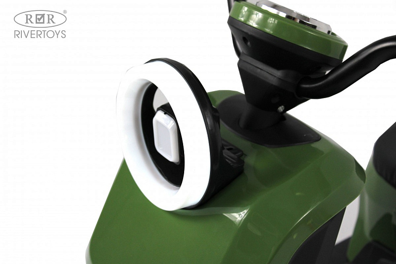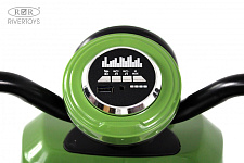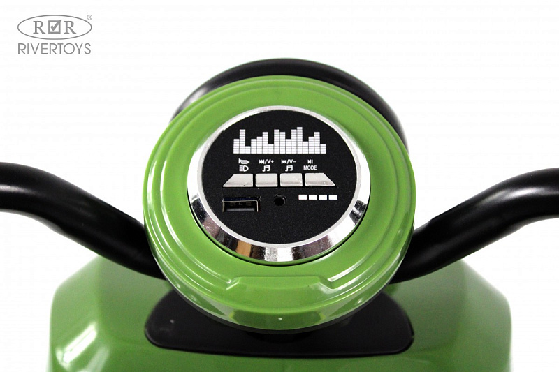 Включение осуществляется кнопкой или движением ноги, что делает использование электромобиля ещё более удобным. На медиа-панели расположены разъёмы USB, AUX и Bluetooth, а также индикатор заряда батареи, что позволяет легко заряжать электромобиль и контролировать уровень заряда аккумулятора.