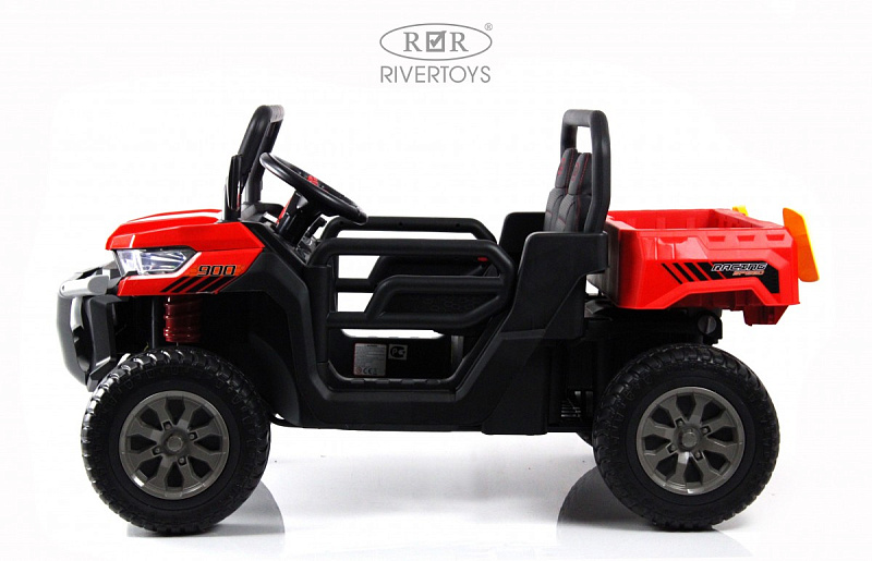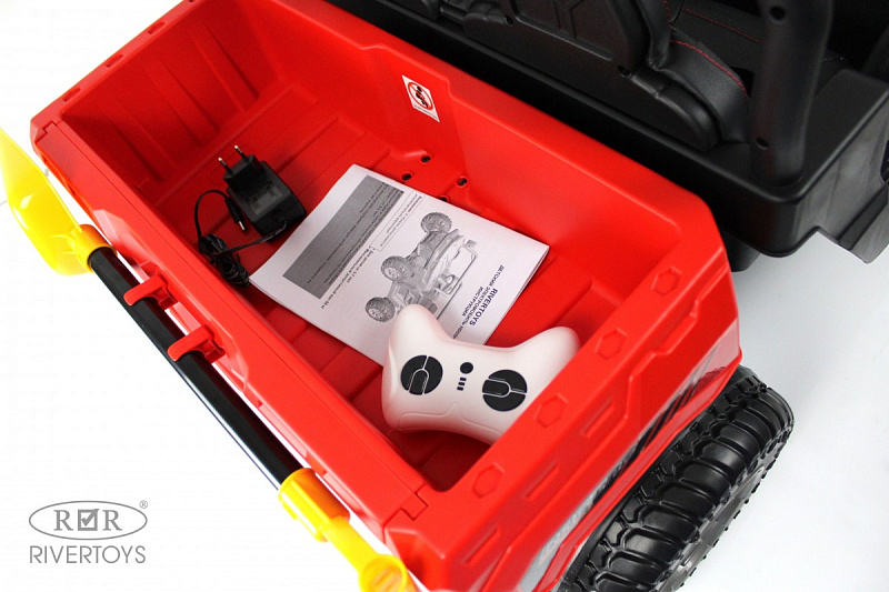 Грузовик RiverToys H005HH обладает повышенной проходимостью, он работает на 24 вольтовым аккумуляторе и четырёх моторах, ребёнку будет интересно на нём кататься, так как он сможет добраться на данном грузовике в те места, куда не проедет обычный электромобиль. Легко преодолевает небольшие бордюры, подъёмы в горку, неровный грунт. С помощью пульта управления родители всегда могут ограничить движение электромобиля, остановить его, если ребёнок при самостоятельном управлении, поехал не в ту сторону. Для комфортной поездки для ребенка автомобиль оборудован мягким сиденьем.