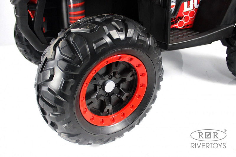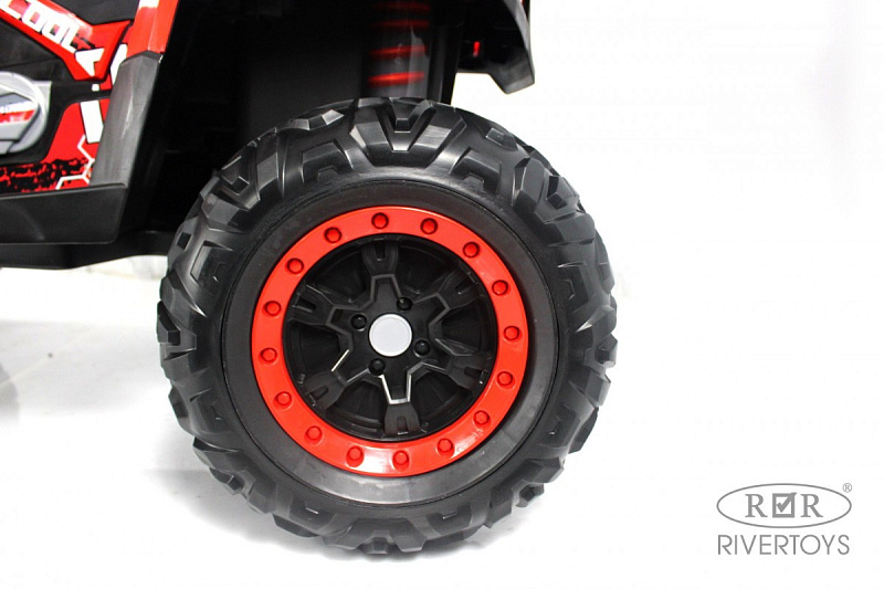 Большие колёса EVA обеспечивают комфорт и устойчивость на дороге, а амортизаторы смягчают неровности. Медиа-панель с USB-входом и AUX позволяет слушать музыку или заряжать телефон. Размер собранной модели составляет 1176875 см, а вес — 18,8 кг. Максимальная нагрузка — 30 кг. Аккумулятор 12V/10Ah обеспечивает длительное время работы, а редуктор 4*10000 об/45W (550) гарантирует надёжность и безопасность.