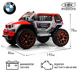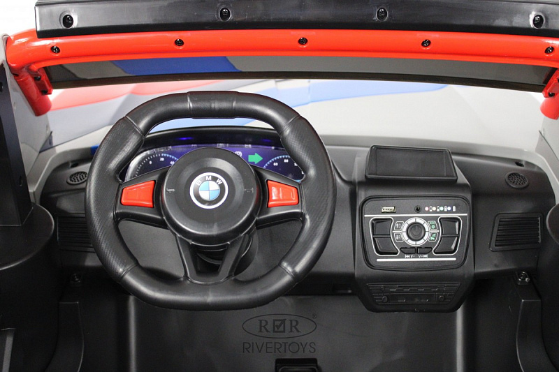 Включение электромобиля осуществляется посредством кнопки. Также предусмотрен режим качалки, который активируется соответствующей кнопкой. Медиа-панель электромобиля включает в себя USB-вход и возможность подключения через bluetooth, а также индикатор заряда батареи.