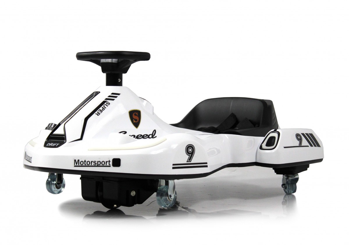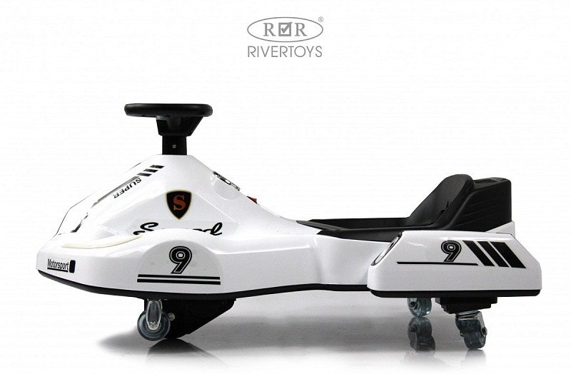 Детский электромобиль K009PX — идеальный выбор для вашего маленького гонщика! Этот дрифт-карт оснащён светодиодной подсветкой рулевой колонки, заводскими мелодиями и звуком клаксона. Управление без пульта делает игру ещё более захватывающей.