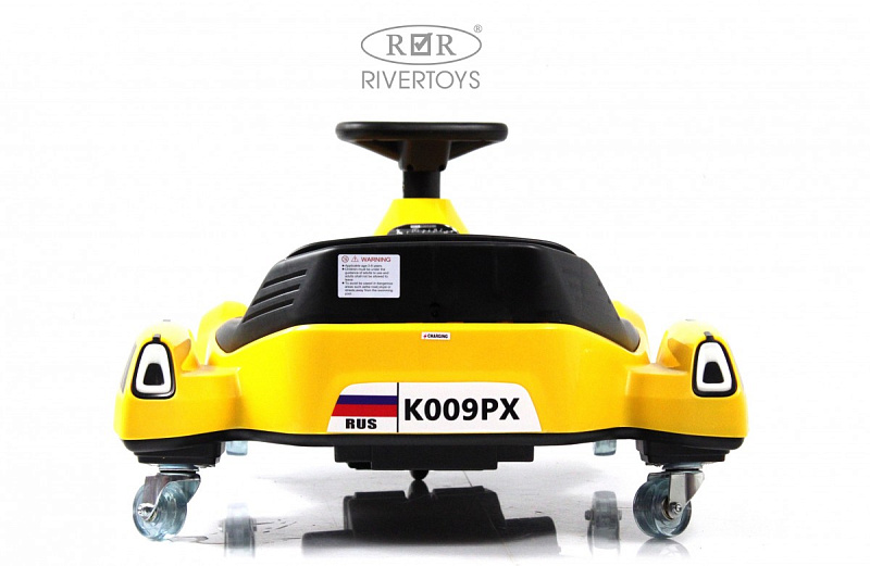 Детский электромобиль K009PX — идеальный выбор для вашего маленького гонщика! Этот дрифт-карт оснащён светодиодной подсветкой рулевой колонки, заводскими мелодиями и звуком клаксона. Управление без пульта делает игру ещё более захватывающей.