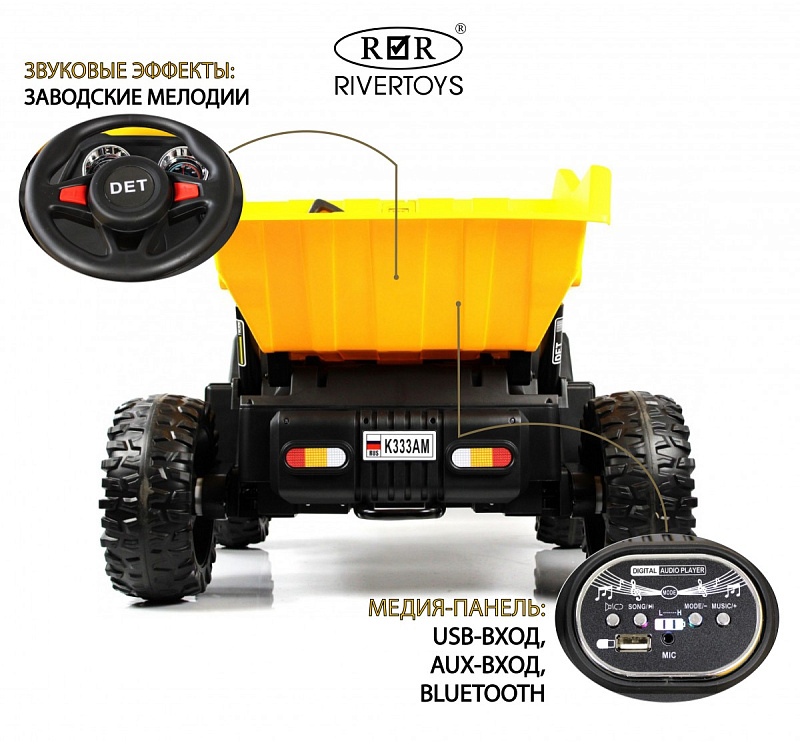 Детский электромобиль K333AM с дистанционным управлением - это полноприводное, двухместное транспортное средство, созданное специально для детей. Он оборудован различными световыми и звуковыми эффектами, чтобы создать приятную и уникальную игровую атмосферу.