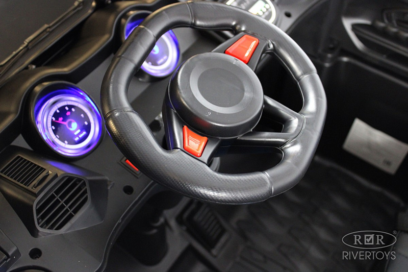 Электромобиль K777AM может двигаться вперед и назад с помощью автоматической коробки передач. Сидение изготовлено из эко-кожи и оборудовано полосным ремнем безопасности, обеспечивая максимальную защиту ребенку.