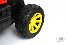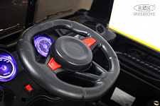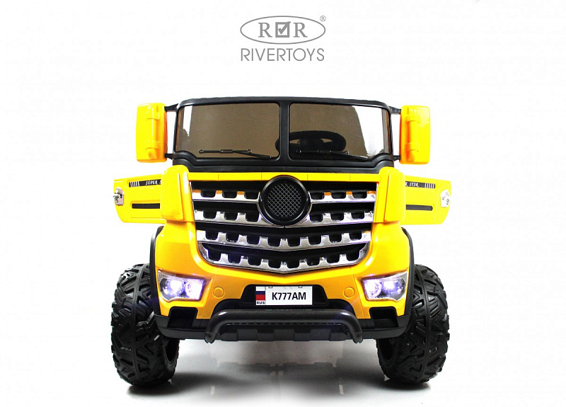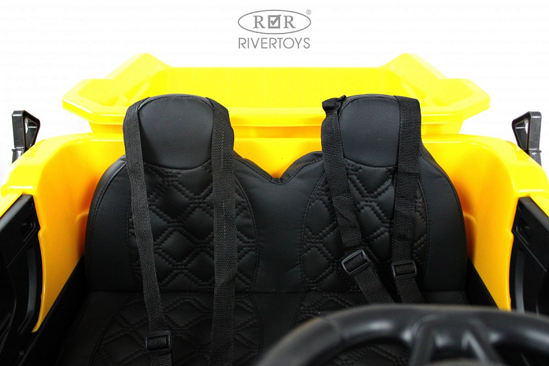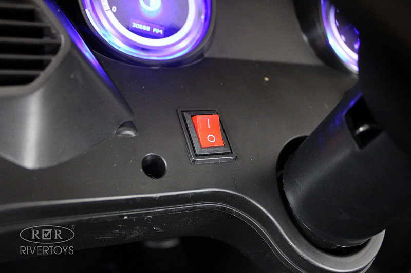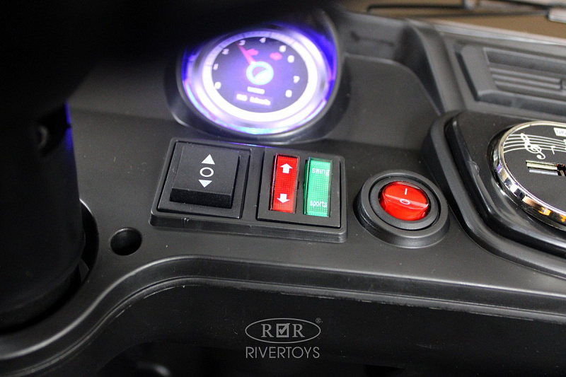 Электромобиль K777AM может двигаться вперед и назад с помощью автоматической коробки передач. Сидение изготовлено из эко-кожи и оборудовано полосным ремнем безопасности, обеспечивая максимальную защиту ребенку.