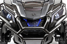 Амортизаторы гарантируют комфортную езду, а включение осуществляется с помощью кнопки. Индикатор заряда батареи всегда подскажет, когда нужно подзарядиться. Каучуковые колёса обеспечивают отличное сцепление с дорогой, а капот открывается, добавляя реализм к игре.