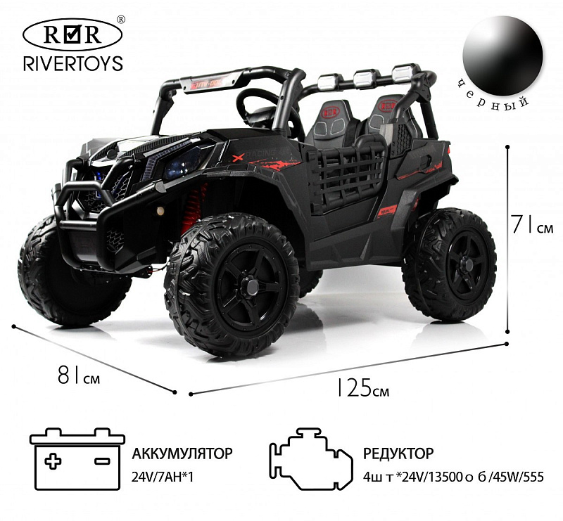 Детский электромобиль RiverToys K777KK LUX 4WD BLACK/черный