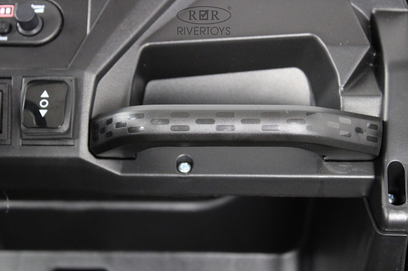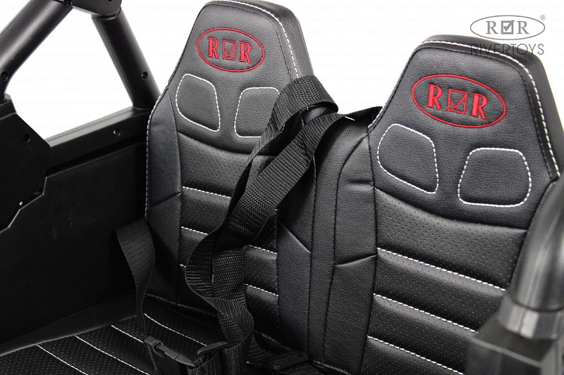 Две скорости вперёд, одна назад, позволяют выбрать оптимальный режим движения. Высокая и низкая скорость — 5 км/ч — удовлетворят потребности как маленьких, так и более опытных водителей. Сиденье выполнено из эко-кожи, а ремень безопасности гарантирует безопасность во время езды.